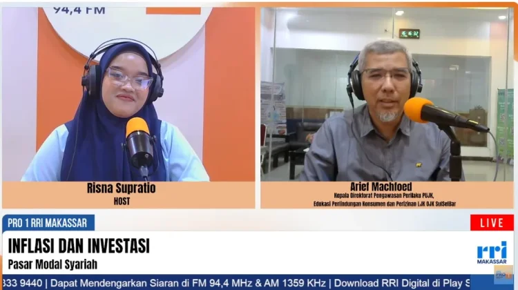 RRI.CO.ID,Makassar - Pemahaman masyarakat terhadap investasi berbasis syariah terus didorong melalui berbagai program edukasi, salah satunya dalam program Inflasi dan Investasi yang disiarkan oleh PRO1 RRI Makassar pada Rabu, 4 Maret 2026. Program yang dipandu oleh penyiar Risna Supratio tersebut menghadirkan Arief Machfoed, Kepala Direktorat Pengawasan Perilaku PUJK, Edukasi Perlindungan Konsumen dan Perizinan LJK OJK SulSelBar, sebagai narasumber untuk membahas tentang Pasar Modal Syariah.