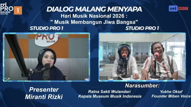 RRI.CO.ID, Malang - Peringatan Hari Musik Nasional 2026 menjadi momentum untuk kembali mengingat peran musik dalam membangun karakter dan identitas bangsa. Hal ini mengemuka dalam dialog Malang Menyapa yang disiarkan Pro 1 RRI Malang, Selasa (10/3/2026), dengan menghadirkan Kepala Museum Musik Indonesia Ratna Sakti Wulandari serta Founder Miben Voice Yukhe Oktaf sebagai narasumber.