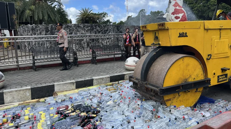 Dalam prosesnya, ribuan botol miras dihancurkan dengan cara digilas menggunakan kendaraan berat. Sementara itu, knalpot brong dimusnahkan dengan cara dipotong menggunakan mesin gerinda.
