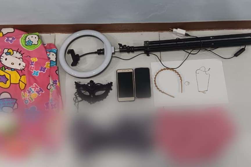 Polisi menyita sejumlah barang bukti, termasuk pakaian seksi, tripod, topeng, bando, dua unit iPhone 13, dan perhiasan. Pelaku juga diketahui memanfaatkan properti tambahan seperti kostum cosplay untuk menarik perhatian penonton.
