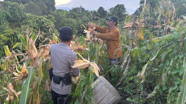 Dukung Ketahanan Pangan, Polsek Mentarang Bantu Panen Jagung