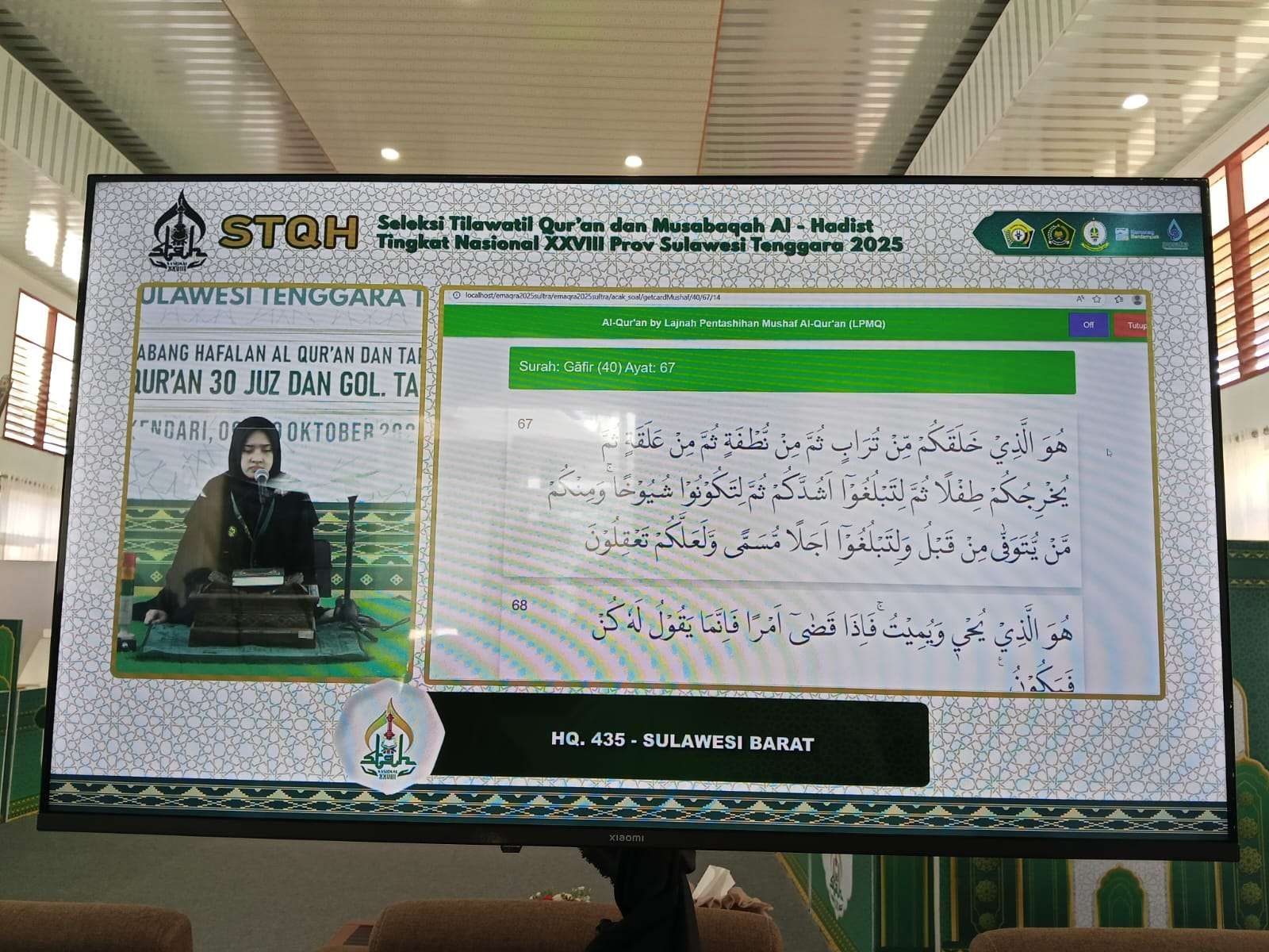 KBRN, Kendari : Hari keempat pelaksanaan Seleksi Tilawatil Qur’an dan Hadist (STQH) Tingkat Nasional ke-28 di Kendari, Sulawesi Tenggara, Provinsi Sulawesi Barat (Sulbar) kembali menurunkan empat delegasi terbaiknya. Para peserta akan tampil di empat venue berbeda dengan cabang lomba yang bervariasi.