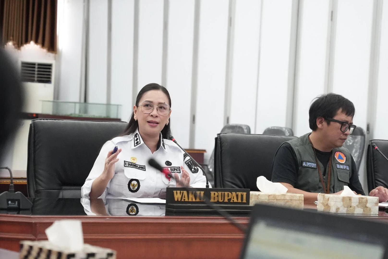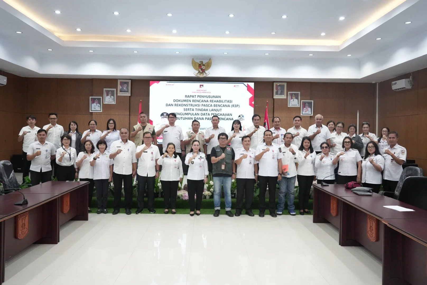 RRI.CO.ID, Minahasa - Wakil Bupati Minahasa, Vanda Sarundajang, memimpin rapat penyusunan Dokumen Rencana Rehabilitasi dan Rekonstruksi Pasca Bencana (R3P) sekaligus tindak lanjut pengumpulan data Pengkajian Kebutuhan Pasca Bencana (Jitupasna) di Kabupaten Minahasa. Kegiatan tersebut berlangsung di Ruang Sidang Kantor Bupati Minahasa, Rabu (11/3/2026).