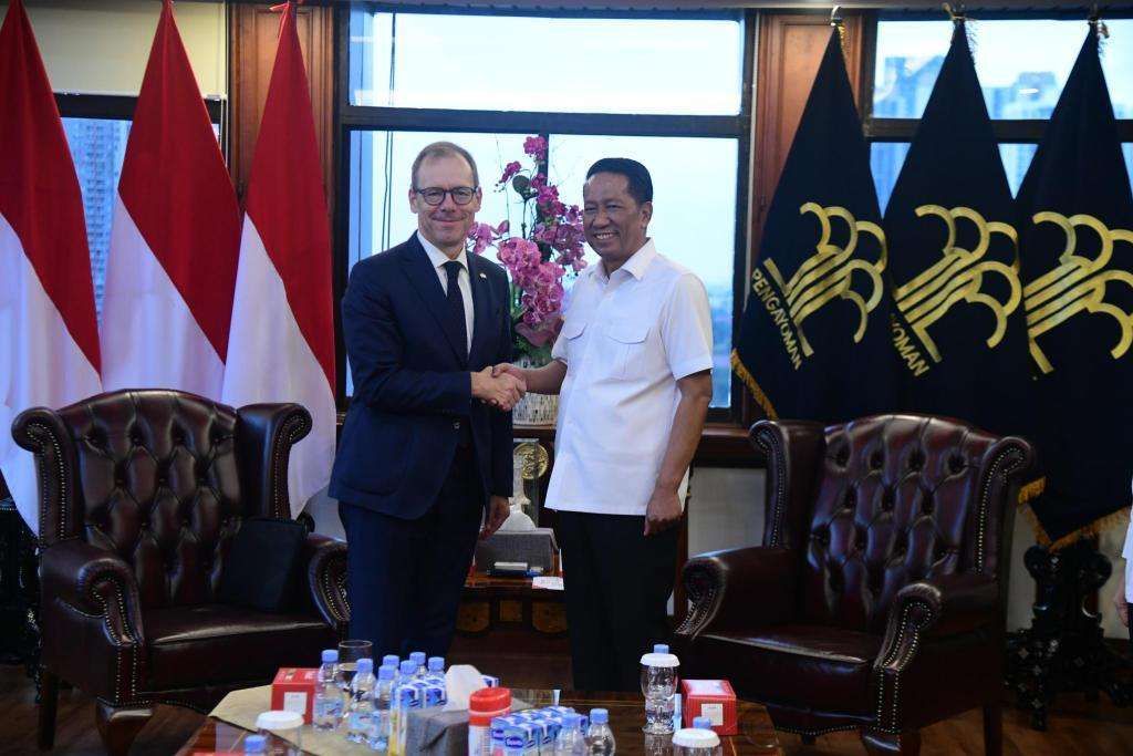 KBRN, Jakarta : Menteri Hukum (Menkum) Republik Indonesia, Supratman Andi Agtas, menyambut kedatangan Duta Besar (Dubes) Swiss, Oliver Zehnder.