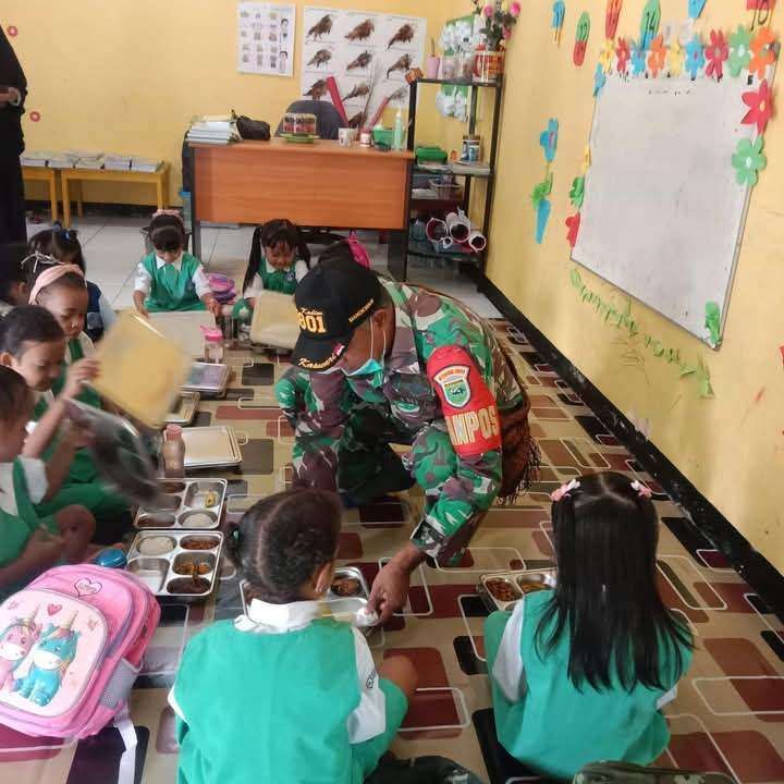 KBRN, Manokwari: Program makanan bergizi gratis dilaksanakan di TK Kartika Kodim Manokwari. Rabu( 08/01/2025)