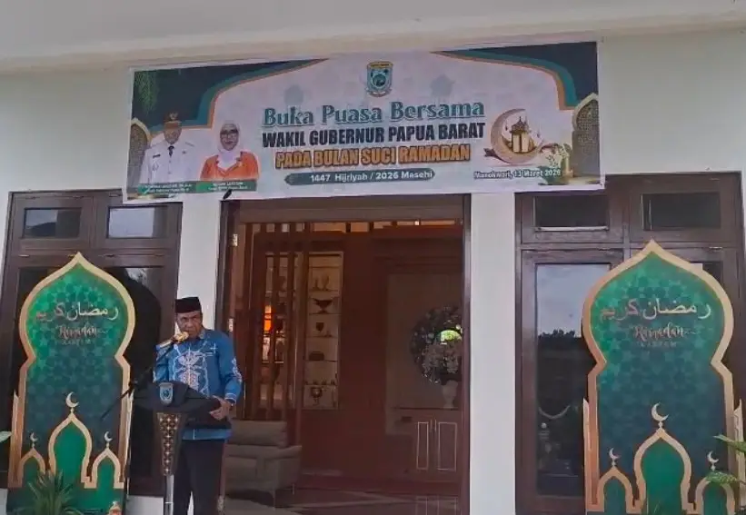 RRI. CO. ID, Manokwari — Wakil Gubernur Papua Barat, Mohamad Lakotani, menggelar acara buka puasa bersama yang dirangkaikan dengan tasyakuran ulang tahunnya ke-55 tahun, Jumat, 13 Maret 2026, di kediamannya di Manokwari. Kegiatan tersebut dihadiri unsur Forum Koordinasi Pimpinan Daerah, tokoh agama, pimpinan organisasi kemasyarakatan, serta sejumlah pimpinan perangkat daerah di lingkungan Pemerintah Provinsi Papua Barat.