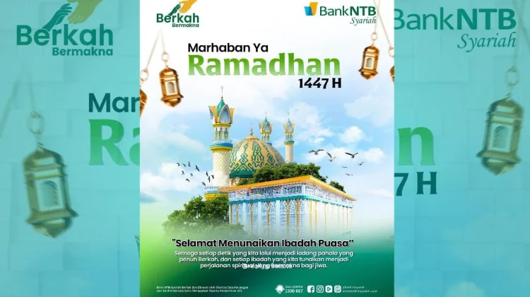 Bank NTB Syariah mengucapkan selamat menjalankan ibadah puasa dan semoga apa yang dilalui menjadi ladang pahala yang penuh berkah. Marhaban Ya Ramadan 1447H/2026M.