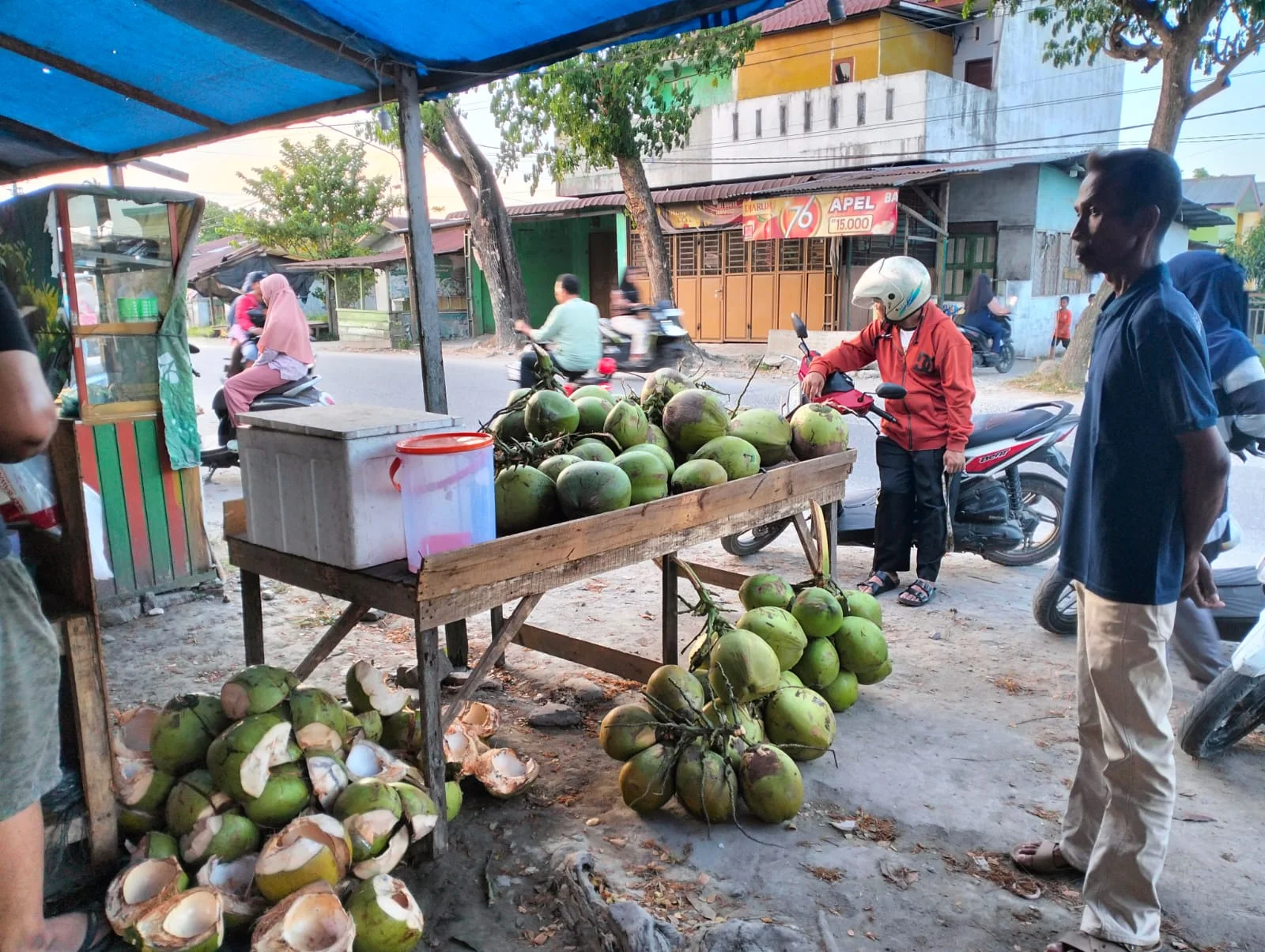 Di sepanjang Jalan Pasar Dua Marelan sendiri terdapat beberapa pedagang kelapa muda yang menjajakan dagangannya. Meski demikian, masing-masing pedagang tetap memiliki pelanggan tersendiri yang datang untuk membeli kelapa muda sebagai minuman berbuka puasa.