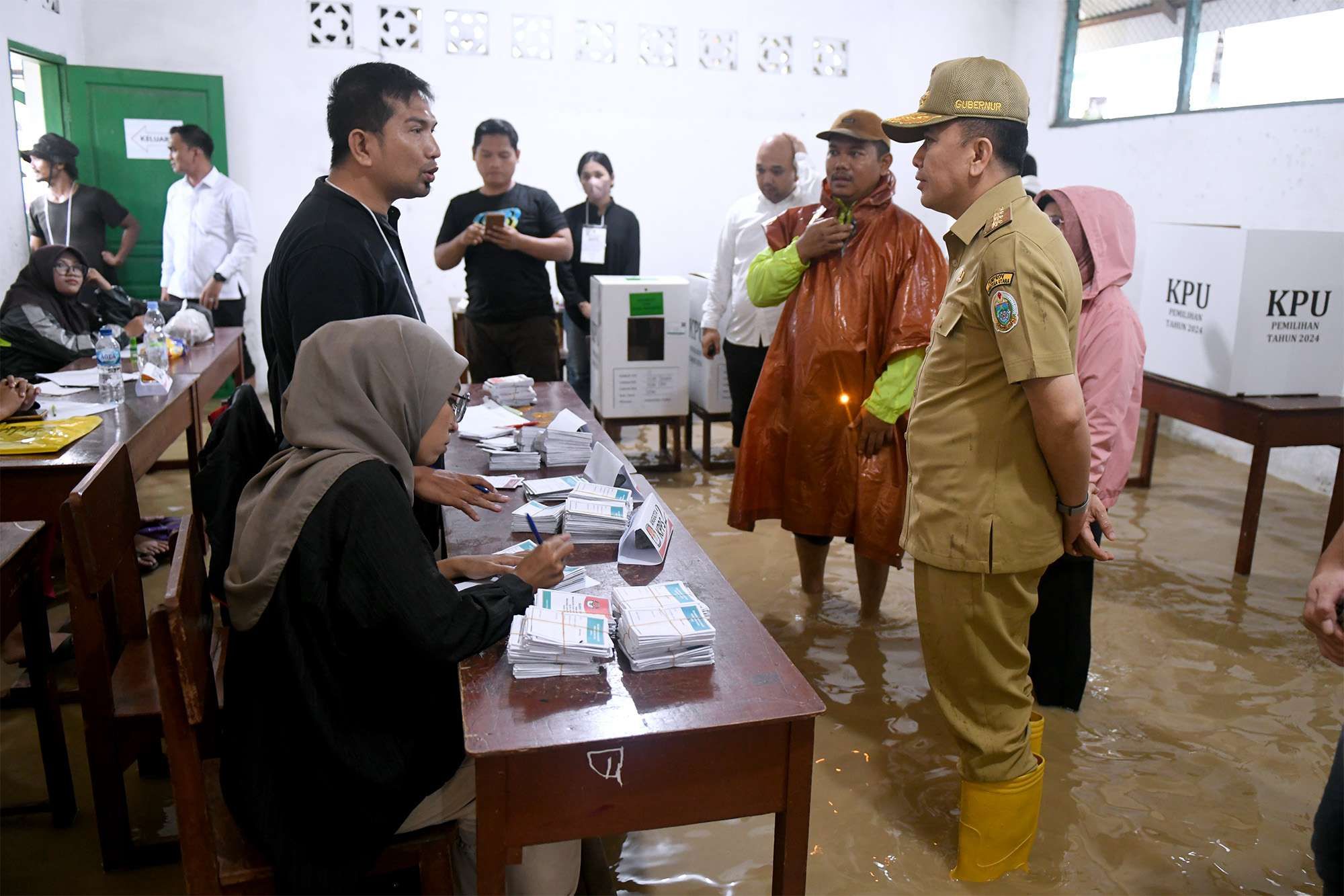 Ia mengatakan, ada TPS yang dipindah lantaran banjir. Ada juga TPS yang tetap melaksanakan pemungutan suara.
