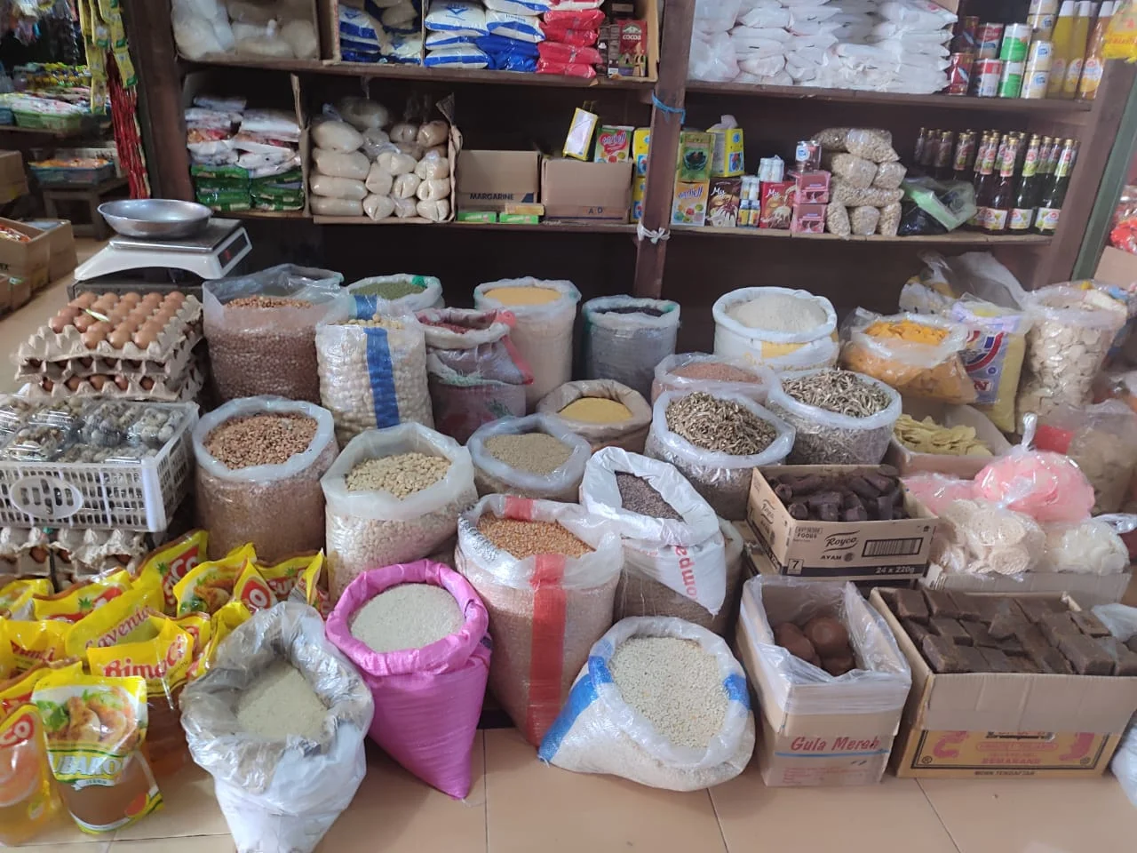 Sedangkan harga Kedelai impor/kg Rp. 10.600,- hingga Rp. 10.700,-, cabe merah keriting/kg Rp. 100.000,- hingga Rp. 110.000,-, cabe merah besar/kg Rp. 120.000,-, cabe rawit merah/kg Rp. 130.000,- hingga Rp. 140.000,- dan bawang merah/kg Rp. 55.000,-.