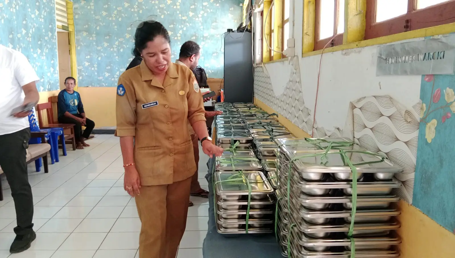 Pembagian makanan dimulai sekitar pukul 09.00 hingga 09.30 WIT dan berlangsung lancar. Para siswa tampak antusias menerima makanan yang dibagikan menggunakan nampan stainless sebelum dibawa ke ruang kelas.