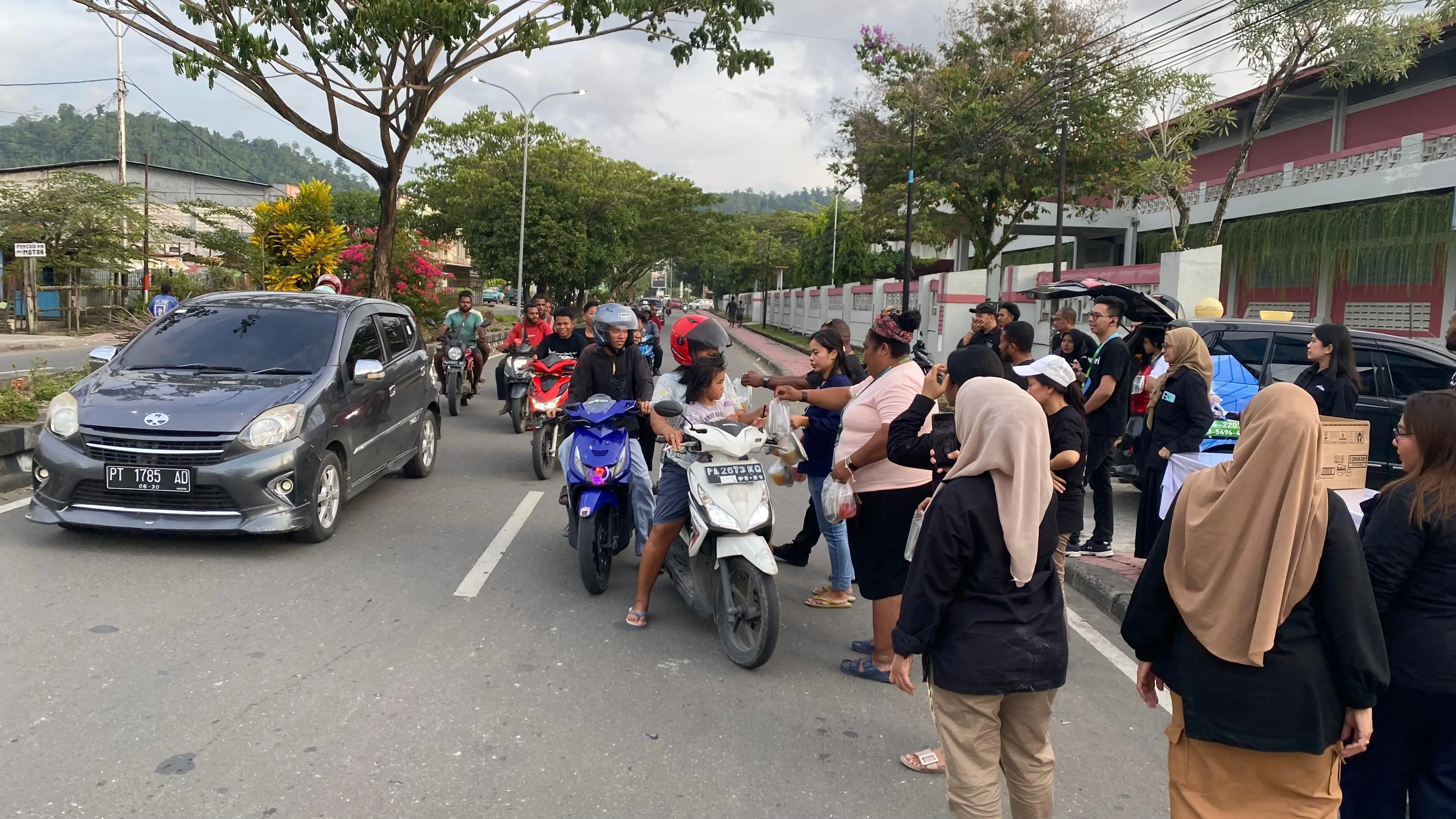 Kegiatan berbagi ini dilaksanakan di depan Kantor RRI Nabire, Jalan Merdeka, sebagai bentuk kepedulian kepada masyarakat yang menjalankan ibadah puasa.