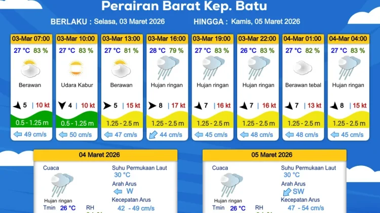 Prakiraan Cuaca Maritim Perairan Kepulauan Batu 3-5 Maret 2026