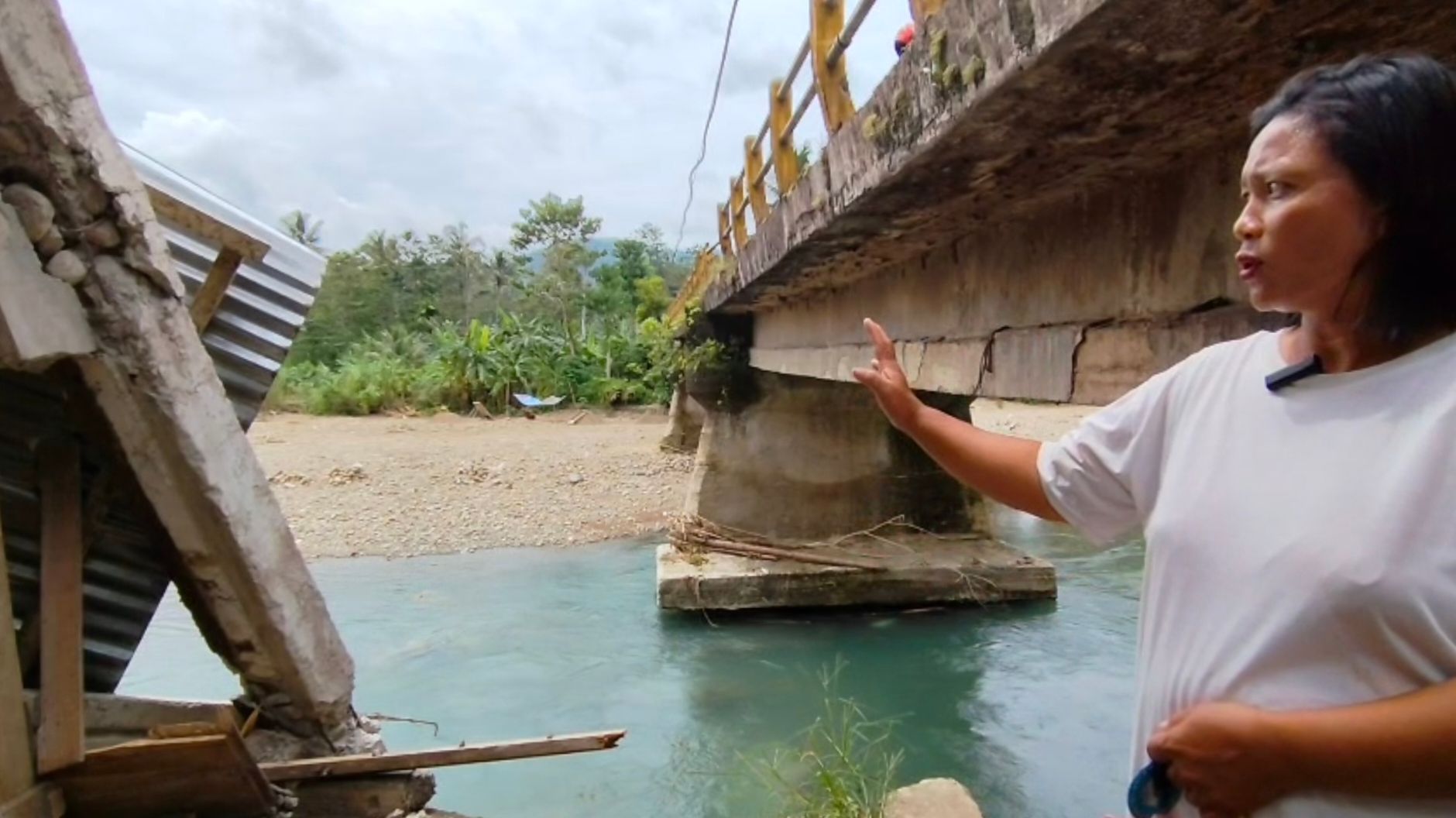 Dari atas jembatan Susua, kita dapat menyaksikan kondisi rumah Ama Viki Baene yang rusak akibat longsor. (Foto: RRI/Anoverlis)