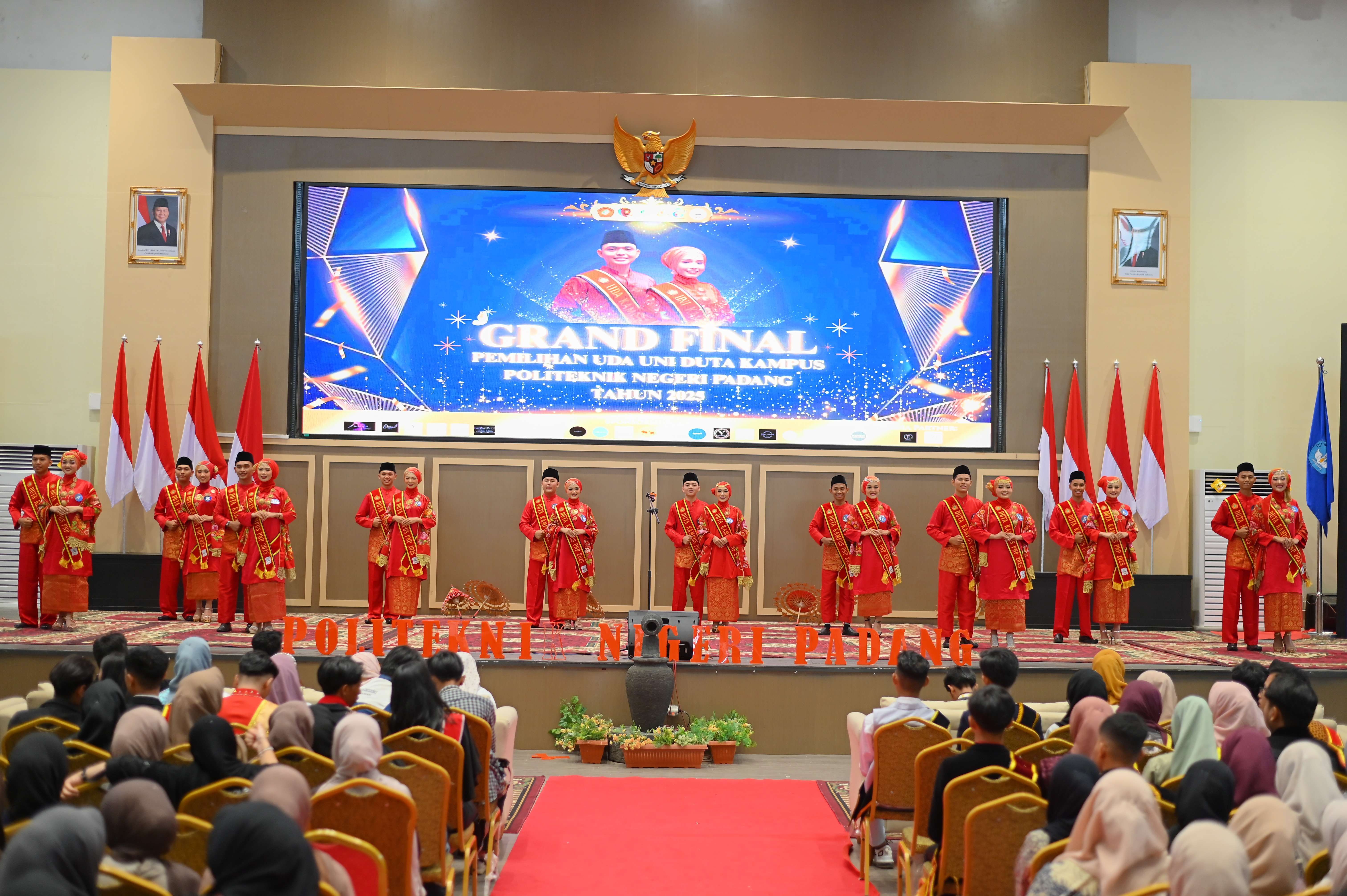KBRN, Padang : Politeknik Negeri Padang (PNP) telah sukses menyelenggarakan rangkaian kegiatan Pemilihan Uda & Uni Duta Kampus Politeknik Negeri Padang Tahun 2025. Ajang bergengsi ini telah berjalan baik melalui rangkaian tahapan seleksi yang ketat serta komprehensif, mulai dari tes tertulis hingga penampilan bakat.