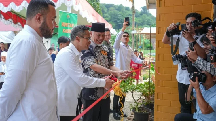 RRI.CO.ID, Padang - Gubernur Sumbar Mahyeldi Ansharullah bersama Ketua Umum KADIN Indonesia Anindya Bakrie meresmikannya 10 unit Hunian Tetap (Huntap) di Batu Busuak, Padang, Selasa 10 Maret 2026. Hunian ini diperuntukkan bagi warga yang kehilangan tempat tinggal akibat bencana banjir bandang beberapa waktu lalu.