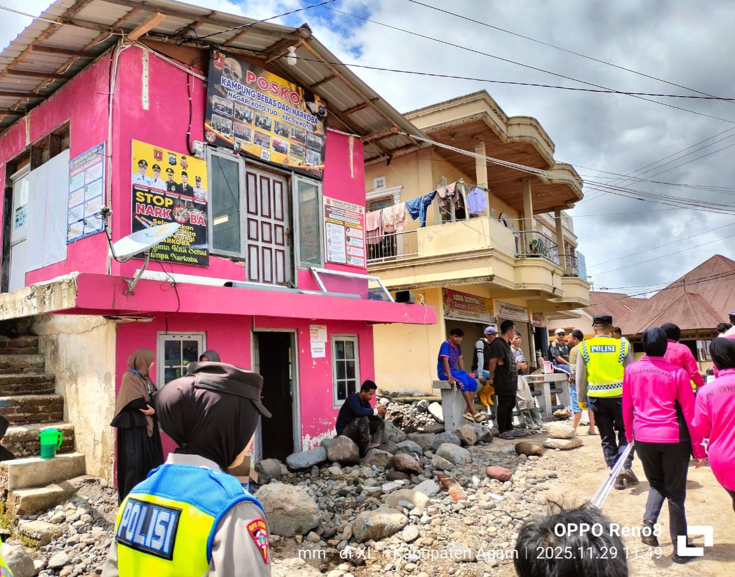 Masih dari lokasi terdampak bencana, tepatnya di Nagari Koto Tuo, Kecamatan IV Koto, Kabupaten Agam, polisi wanita dan personil dari Satuan Narkoba Polresta Bukittinggi menyingsing lengan baju, menyisir lokasi beberapa saat setelah peristiwa alam, banjir bandang dan galodo memporak-porandakan negeri sekitarnya.