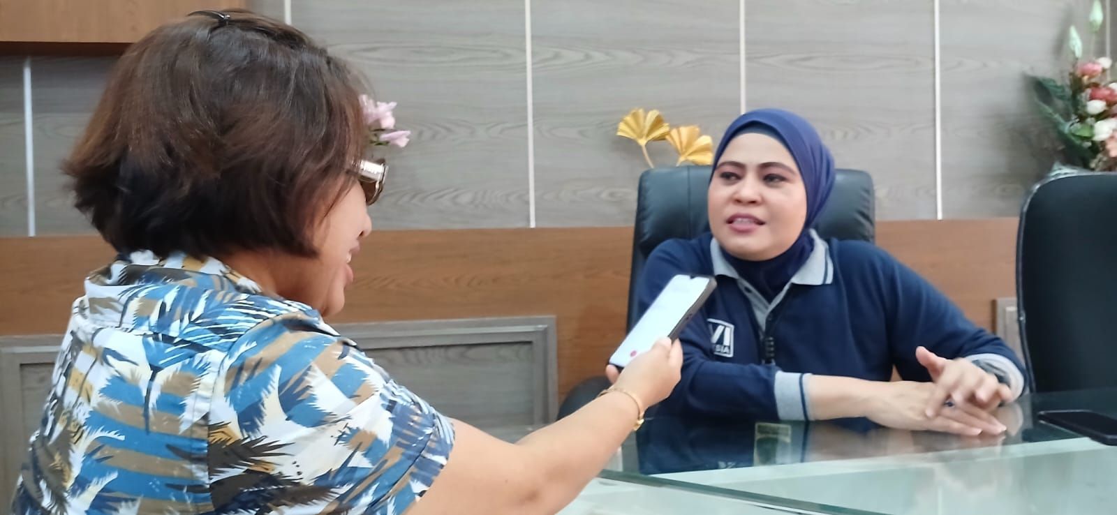 Wawancara Reporter RRI Padang (Sri Darni) dengan dokter polisi wanita Tim DVI Polda Sumatera Barat, dr. Eka Purnama Sari pada Jumat, (26/12/2025). (Foto:RRI)