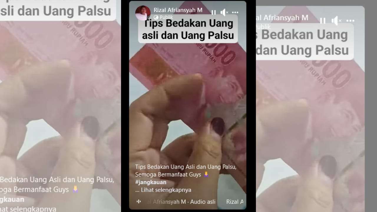 KBRN, Palangka Raya: Beredar sebuah sebuah unggahan video di media sosial Facebook dengan narasi bahwa mengelupas uang kertas merupakan cara untuk mendeteksi sebuah uang asli atau palsu. Dalam unggahan tersebut, apabila uang kertas bisa dikelupas maka uang tersebut palsu.