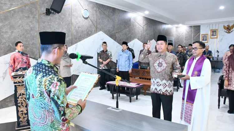 RRI.CO.ID, Palembang- Kakanwil Kemenag Sumsel Syafitri Irwan secara resmi melantik Sutrisno sebagai Pembimbing Masyarakat (Pembimas) Katolik yang baru. Prosesi pelantikan dan pengambilan sumpah jabatan berlangsung di Aula Kanwil Kemenag Sumsel, Jumat 27 Febuari 2026.