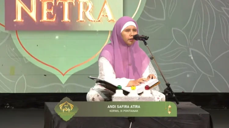 Qori’ah tunanetra Korwil 9 Pontianak itu seakan mengajak hadirin larut dalam setiap ayat yang dibaca. Tepuk tangan pun pecah di akhir penampilannya, menandai penutupan yang mengesankan bagi seluruh rangkaian Pekan Tilawatil Qur’an (PTQ) 2026.