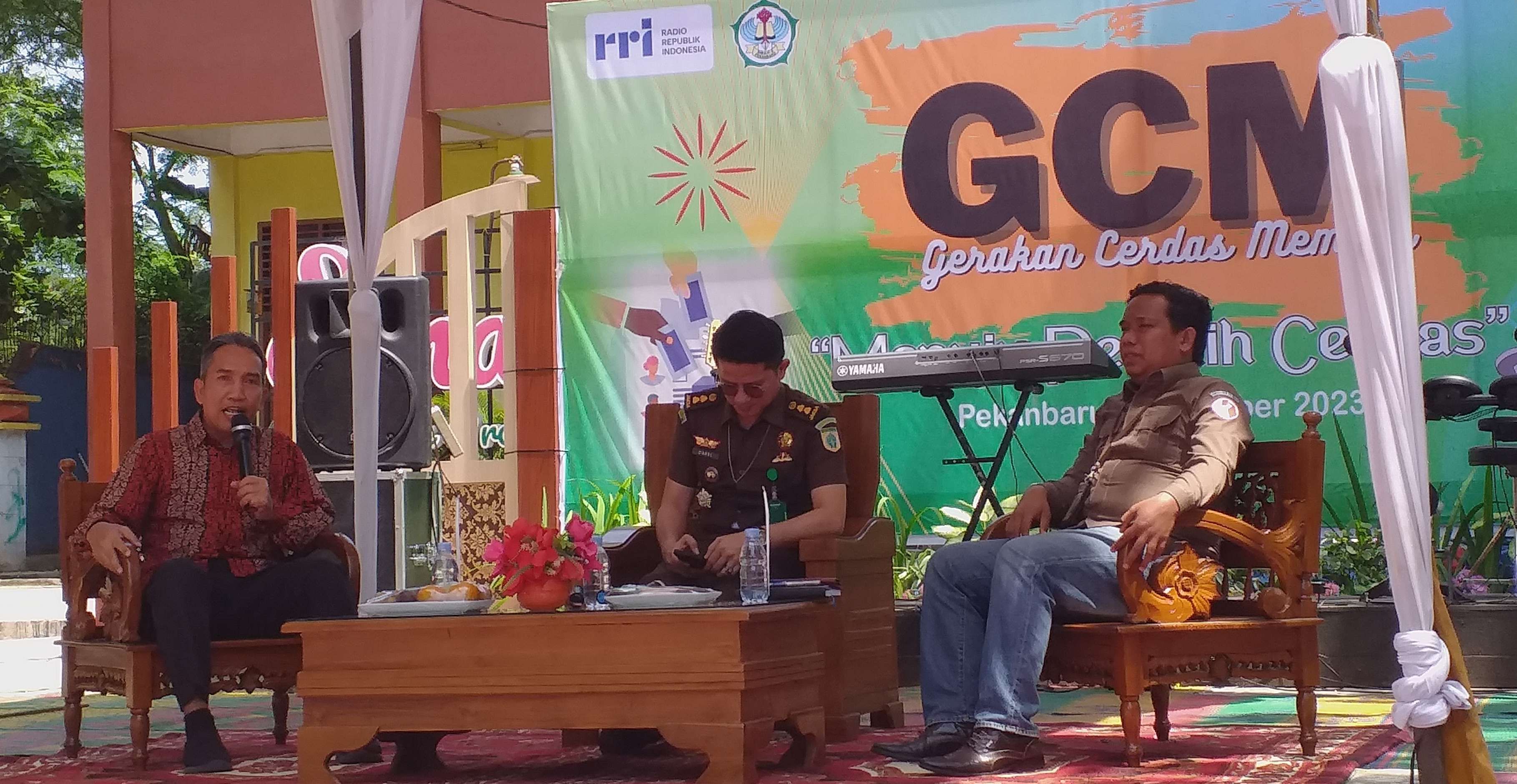 KBRN, Pekanbaru - Lembaga Penyiaran Publik Radio Republik Indonesia (LPP RRI) Pekanbaru menggelar Gerakan Cerdas Memilih di SMA N 5 Pekanbaru, Rabu (25/10/2023).