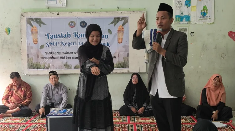 RRI.CO.ID, Pontianak – Suasana bulan suci Ramadan dimanfaatkan oleh keluarga besar SMP Negeri 24 Kota Pontianak sebagai momentum untuk menanamkan nilai-nilai keimanan sekaligus memperkuat pembentukan karakter peserta didik. Sejumlah kegiatan bernuansa religius dilaksanakan secara terpadu melalui program kokurikuler yang melibatkan seluruh warga sekolah pada Rabu, 11 Maret 2026 pagi.