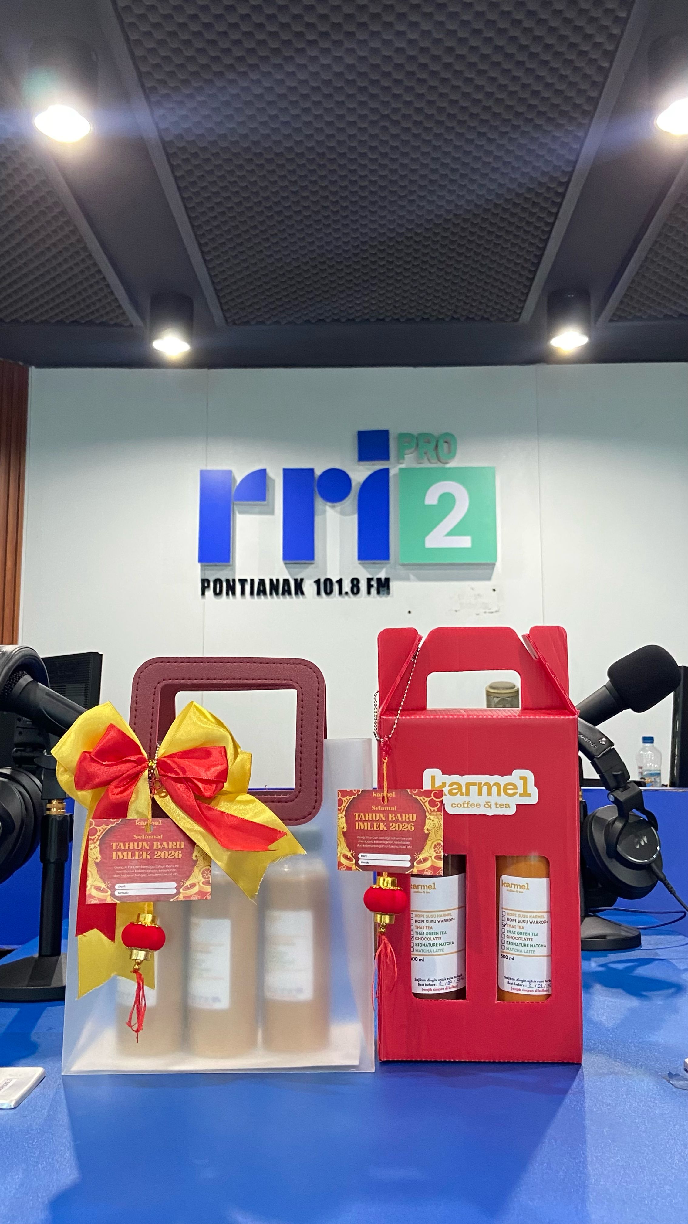 RRI.CO.ID, Pontianak – Usaha minuman kopi dan teh lokal, Karmel Coffee & Tea, menghadirkan hampers spesial Imlek dengan berbagai varian rasa yang bisa disesuaikan dengan selera pelanggan. Produk ini diperkenalkan dalam program Obrolan Tentang Wirausaha (OTW) yang menghadirkan owner Karmel, Rya, di Studio Pro 2 Pontianak, Jumat, 6 Februari 2026. Kehadiran hampers ini menjadi salah satu inovasi usaha yang menyasar pasar anak muda hingga keluarga.