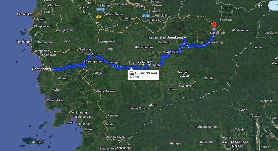 Rute Pontianak – Putussibau, Kapuas Hulu (Foto: Google Maps)
