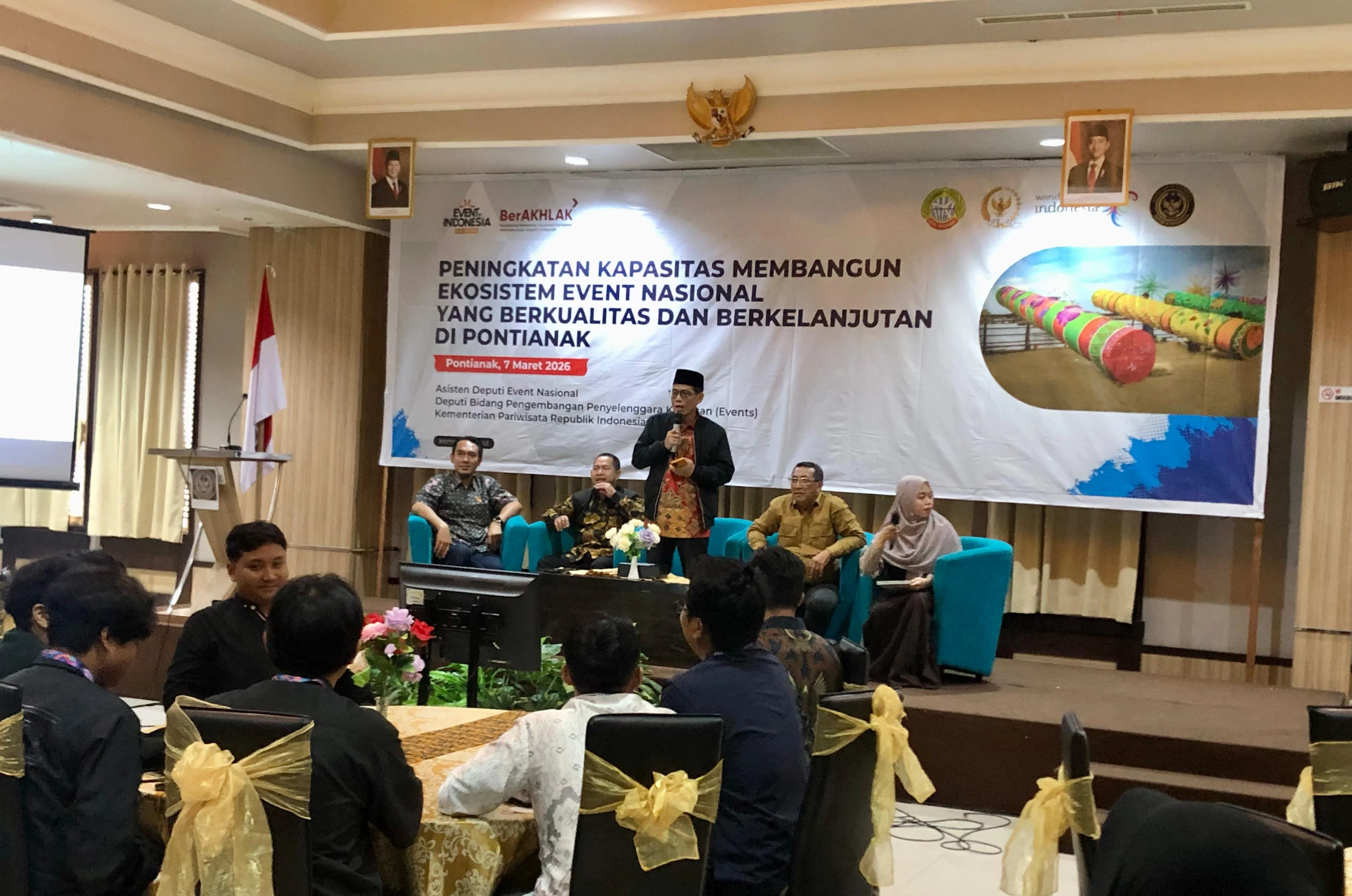 RRI.CO.ID, Pontianak – Dalam upaya membangkitkan gairah pariwisata di Kalimantan Barat, khususnya Kota Pontianak, sebuah pelatihan peningkatan kualitas penyelenggaraan event digelar dengan kolaborasi strategis antara Pemerintah Pusat dan Pemerintah Daerah dalam hal ini Bidang Pengembangan penyelenggara kegiatan (events) Kementerian Pariwisata bersama Komisi VII DPR RI. Kegiatan ini fokus pada transformasi event lokal agar mampu bersaing di kancah nasional di Kota Pontianak, pada Sabtu, 7 Maret 2026.