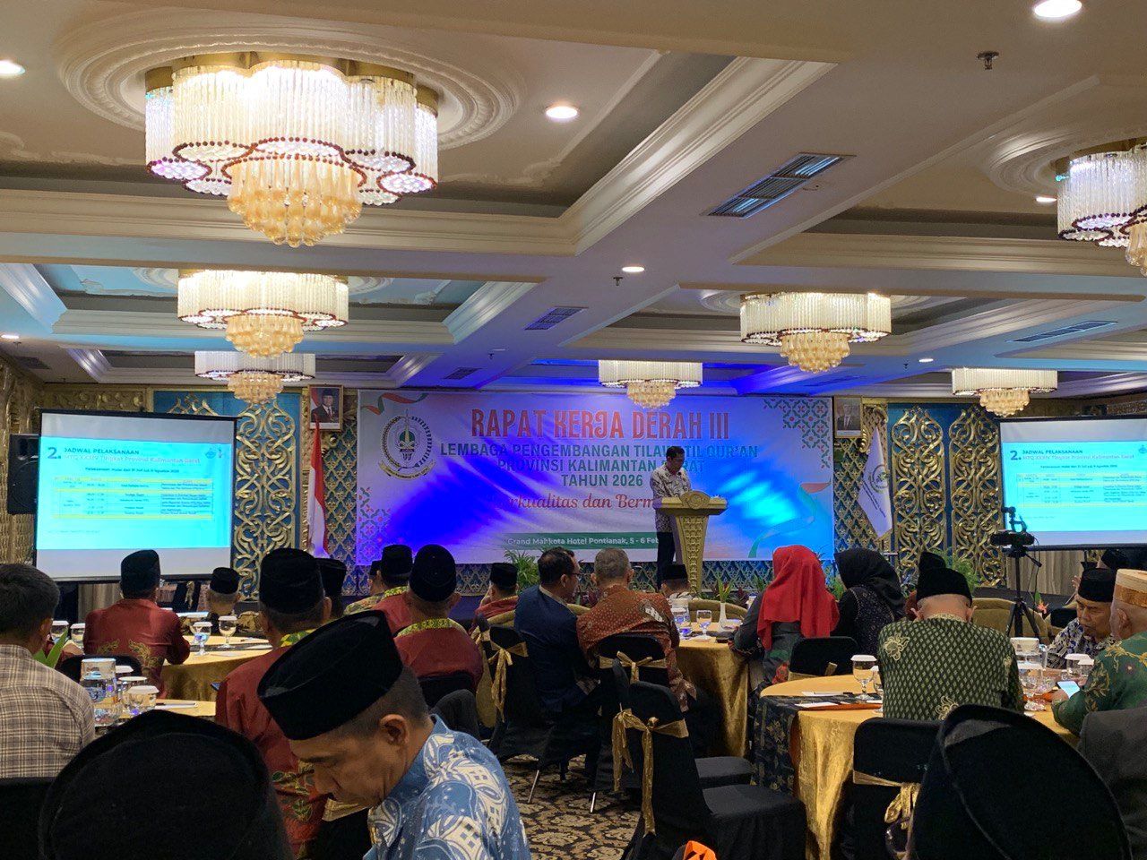 Terkait persiapan dan anggaran disampaikan pada Rakerda (Rapat Kerja Daerah) III LPTQ Kalbar 2026. Kegiatan ini dilaksanakan di Aula Hotel Mahkota, Pontianak pada Kamis, 5 Februari 2026.