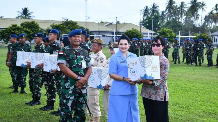RRI.CO.ID. Natuna-Komandan Lanud Raden Sadjad (Danlanud RSA) Marsekal Pertama TNI Onesmus Gede Rai Aryadi, S.E., M.M., M.Han., menyerahkan bingkisan Lebaran secara simbolis kepada personil di Lapangan Apel Dirgantara Lanud RSA, Natuna, Provinsi Kepri, Selasa 10 Maret 2026 . Dalam penyerahan bingkisan itu, Danlanud juga didampingi Ketua PIA Ardhya Garini Cabang 9 Daerah I Ny. Marni Onesmus Pasaribu