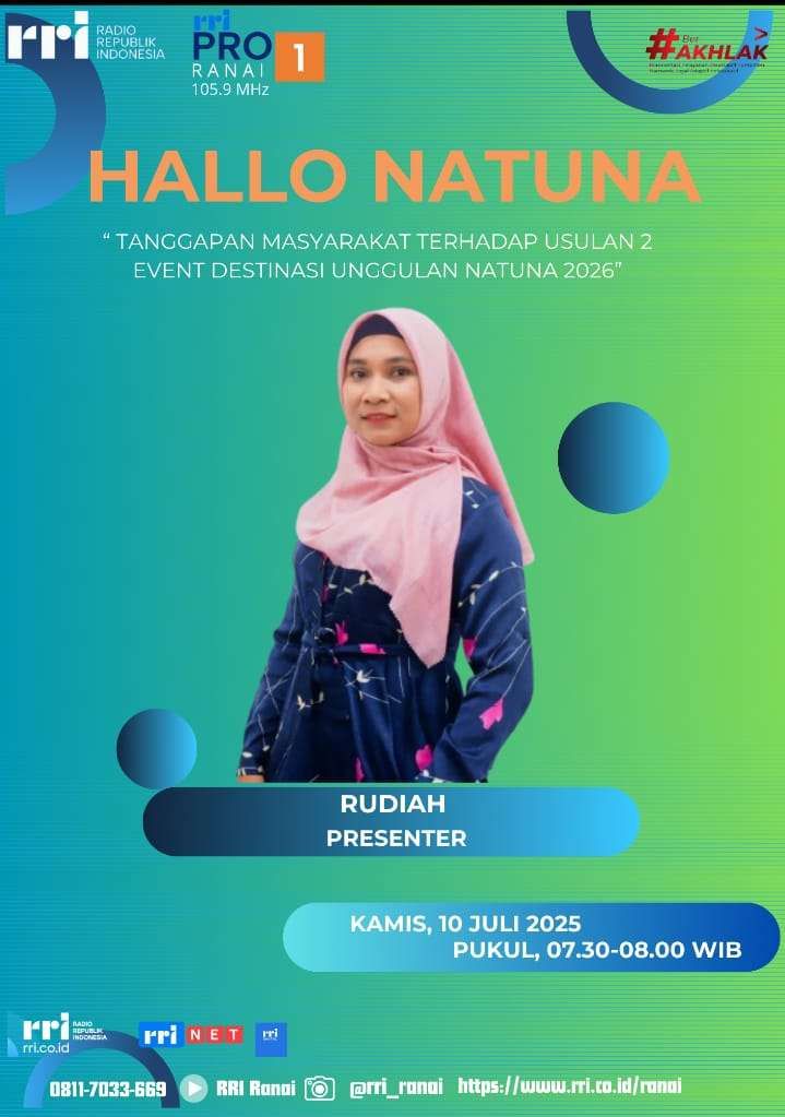 Seperti apa tanggapan masyarakat Natuna terhadap usulan 2 event destinasi unggulan tersebut, berikut tanggapan pendengar Pro 1 RRI Ranai dalam acara Hallo Natuna (Opini Publik) pada hari Kamis, 10 Juli 2025 yang dilaksanakan mulai pukul 07.30 wib sampai dengan pukul 08.00 wib dengan topik : Tanggapan Masyarakat Terhadap Even Destinasi Unggulan Natuna 2026, berikut komentar pendengar di no HP 081266477719.