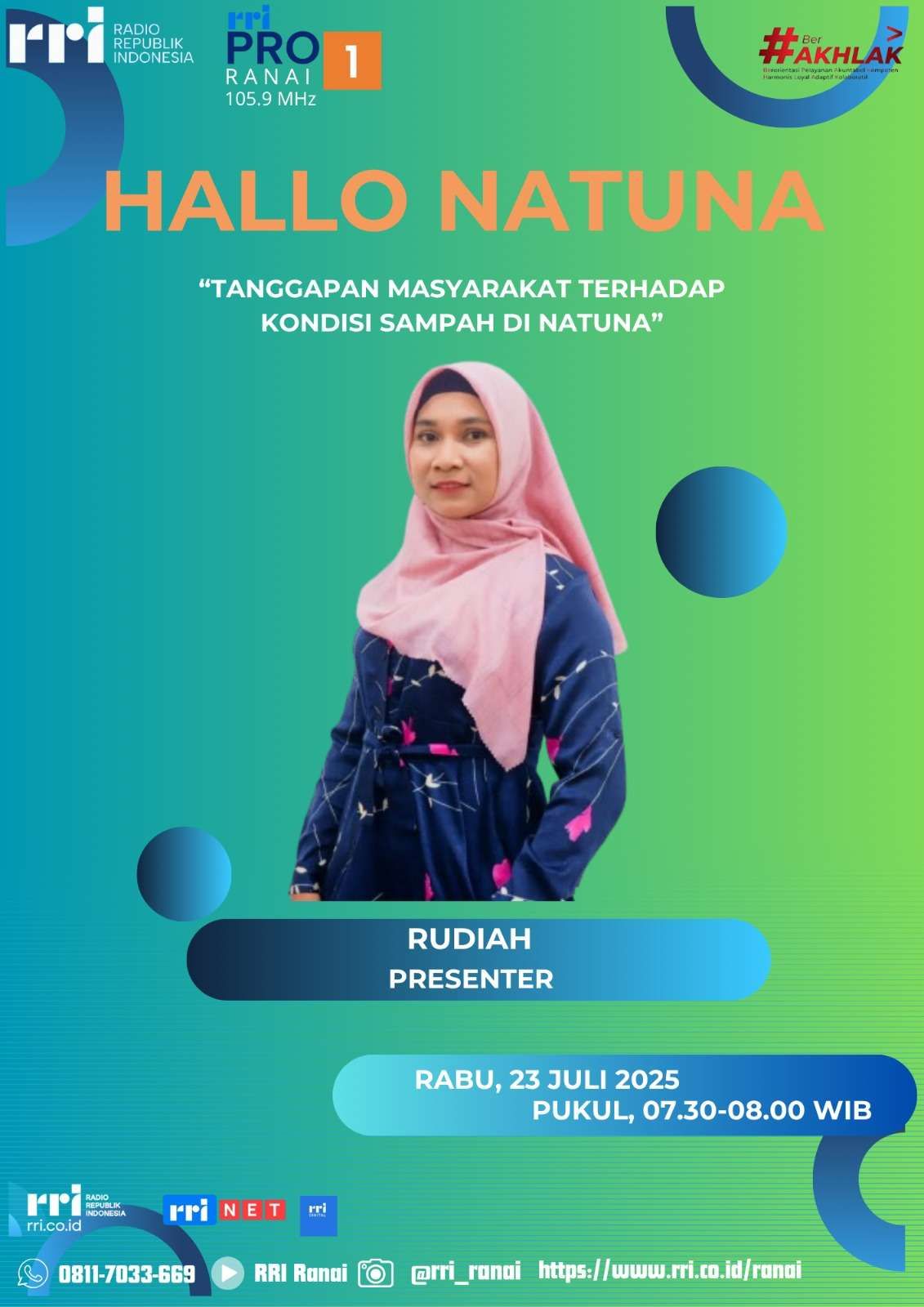 Terkait dengan kondisi sampah di Natuna saat ini, berikut tanggapan pendengar Pro 1 RRI Ranai dalam acara Hallo Natuna (Opini Publik) pada hari Rabu, 23 Juli 2025 yang dilaksanakan mulai pukul 07.30 wib sampai dengan pukul 08.00 wib. Program siaran Hallo Natuna ini mengangkat topik : Tanggapan Masyarakat Terhadap Kondisi Sampah di Natuna.
