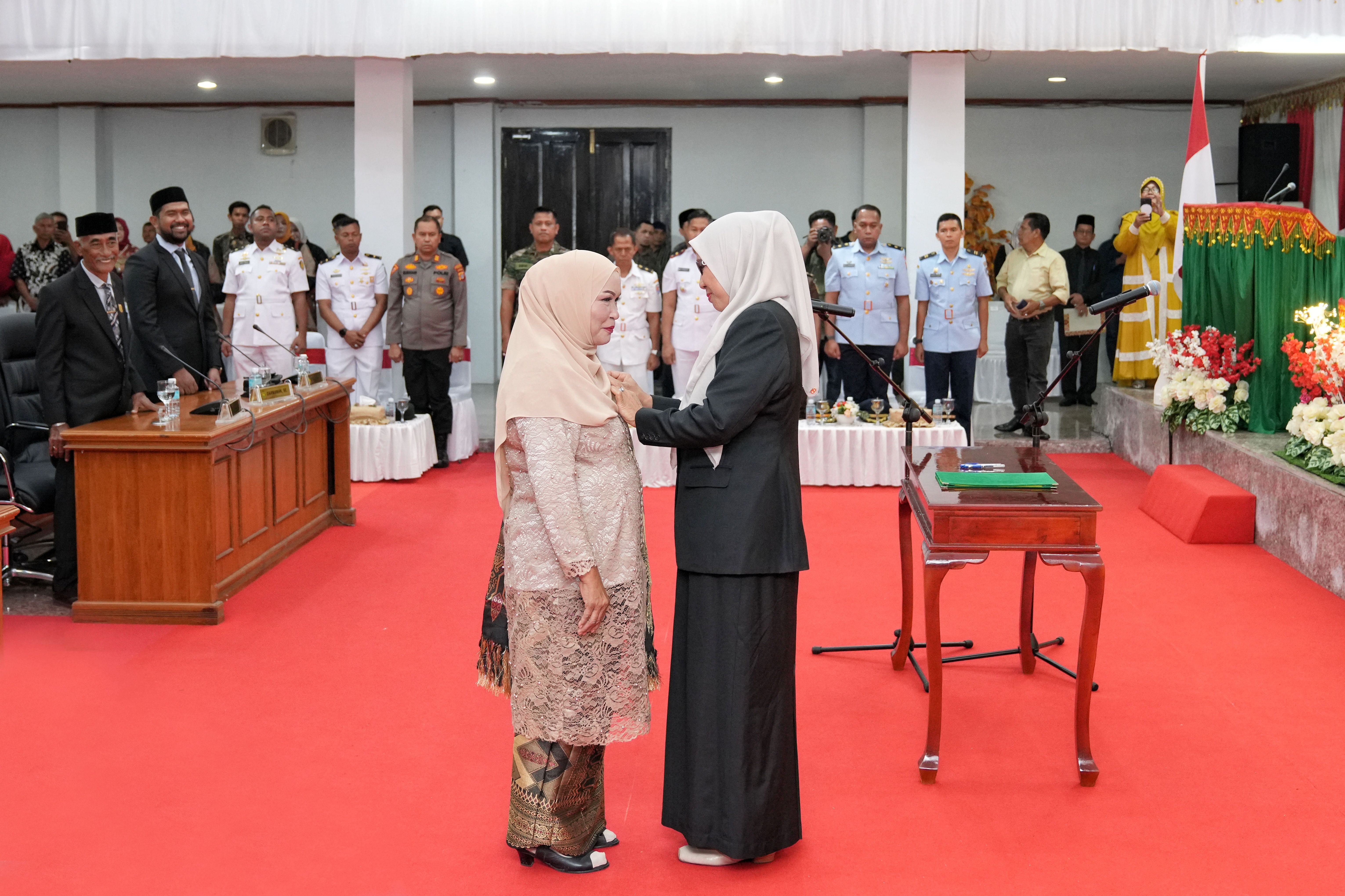 Penyematan Tanda Anggota oleh Ketua DPRK Sabang, Magdalaina kepada Risa Nirmala. (Foto. Dok/Rudi)