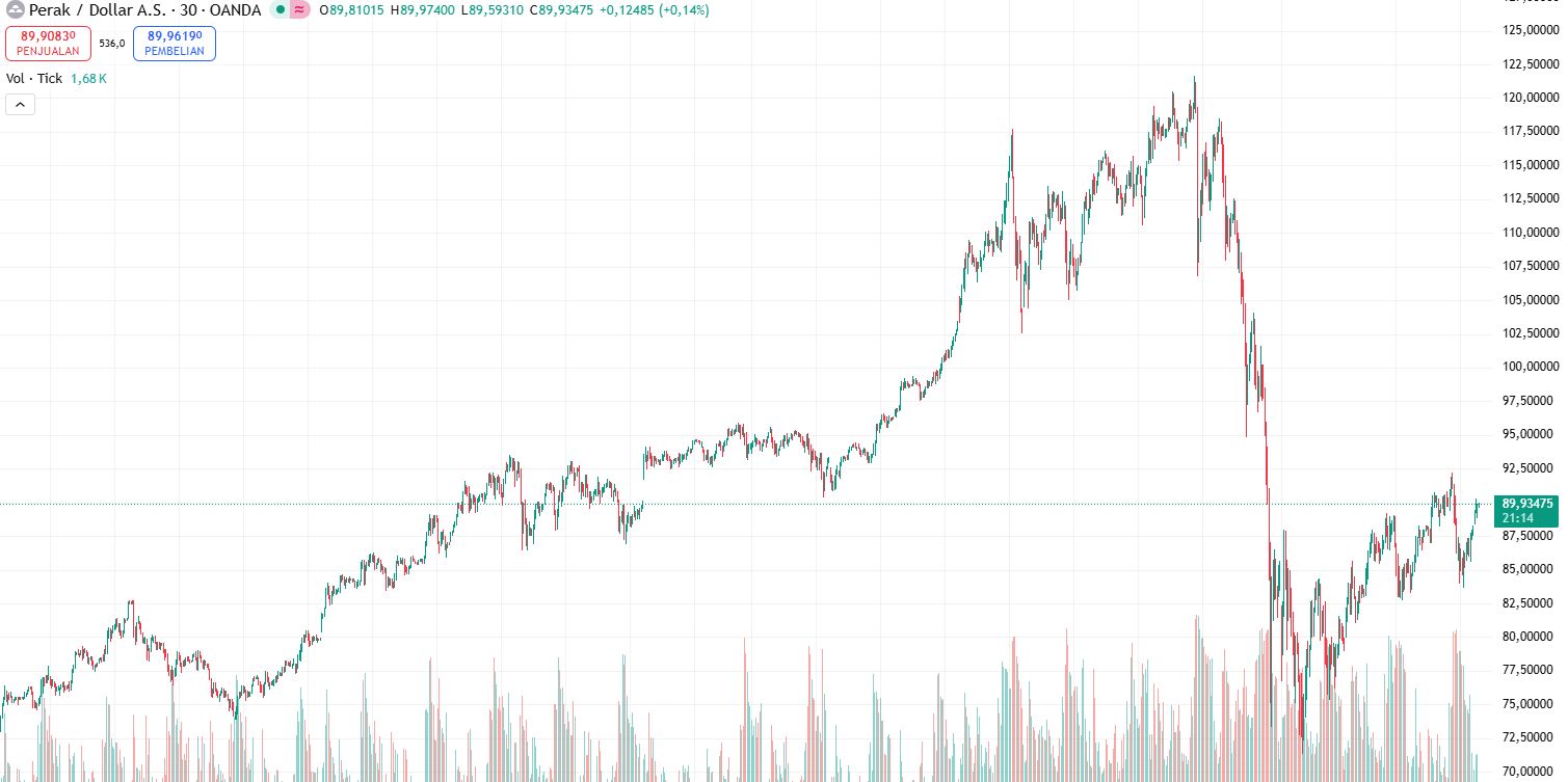 Hingga 4 Februari 2026, harga perak dunia untuk pasar spot diperdagangkan di kisaran US$ 84,35 hingga US$ 91,72 per troy ons. Data perdagangan menunjukkan adanya pemulihan harga sekitar 5 hingga 8 persen dari aksi jual tajam yang terjadi pada awal pekan.