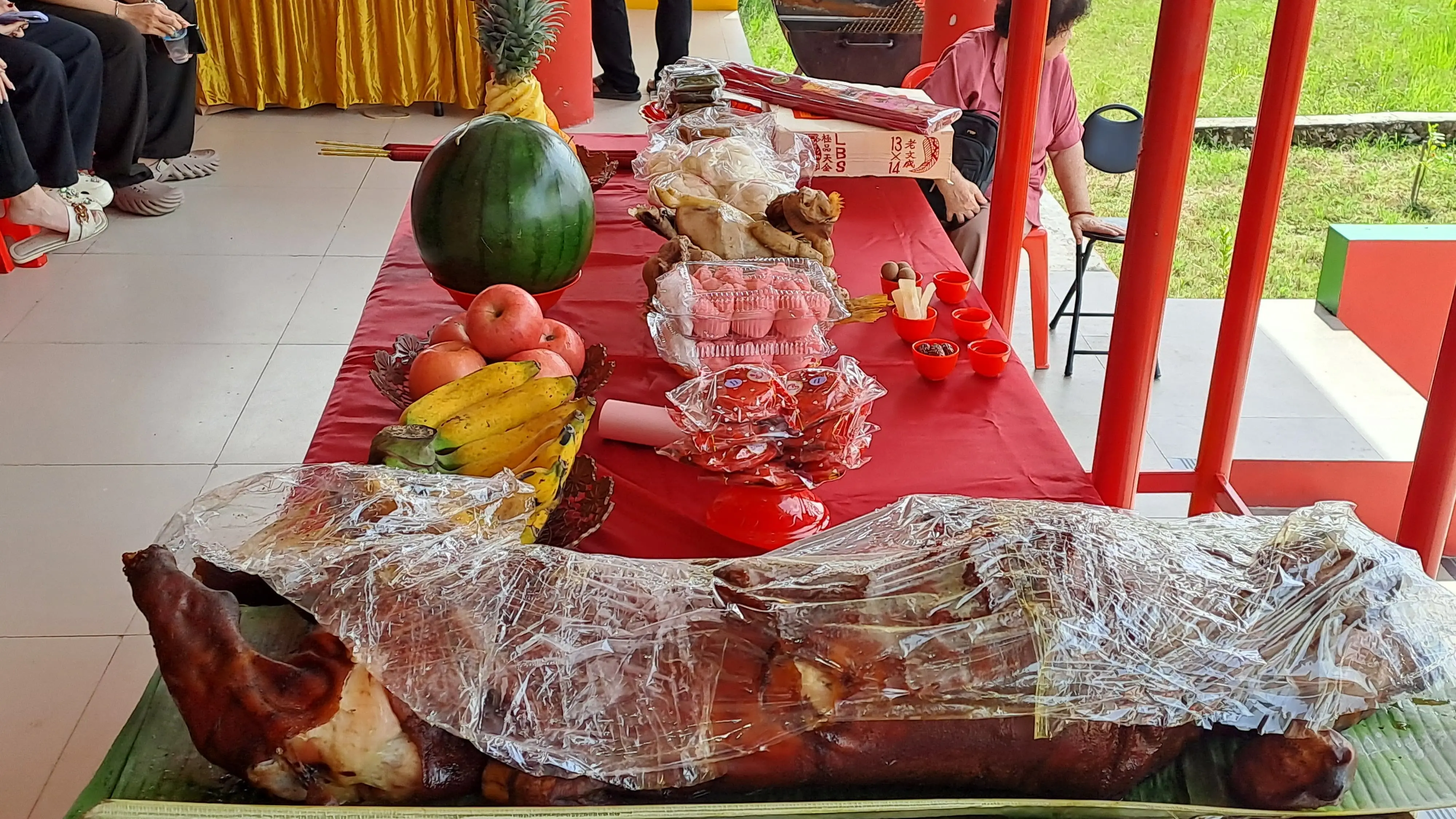 "Karena dulu lebih kompleks, jadi diganti menjadi satu ekor ayam, ikan bandeng dan daging babi," ucapnya.