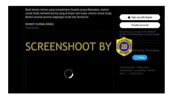 KBRN, Semarang: Dilansir dari laman Mafindo, Rabu (2/9/2024) akun Twitter @selynprintessa mengunggah video yang berisi himbauan supaya masyarakat menghindari kurma yang diproduksi Israel, karena kurma Israel ditanam di atas tanah Palestina dan terdapat praktitk pelanggaran HAM terhadap pekerjanya dalam proses produksi kurma Israel tersebut.