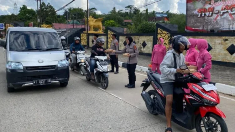 Polres dan Bhayangkari Kukar Sapa Pengendara Sambil Berbagi Berkah Takjil
