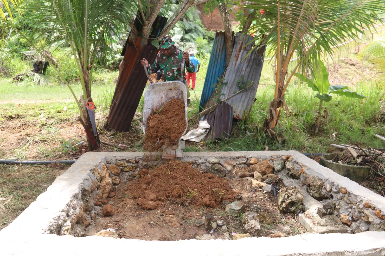 Raut wajah bahagia dan penuh syukur terpancar dari masyarakat yang terlibat langsung dalam proses pembangunan. Kebersamaan antara TNI dan warga tampak nyata saat mereka bersama-sama memasang pondasi, mengangkat material, hingga merapihkan area sekitar lokasi pekerjaan.