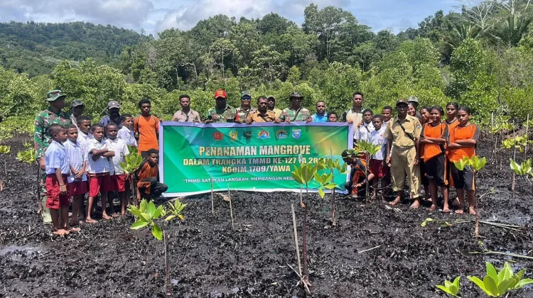 RRI.CO.ID, Serui - Komitmen menjaga kelestarian lingkungan terus diwujudkan melalui program non fisik TMMD ke-127 oleh Kodim 1709/Yawa. Pada Selasa 3 Maret 2026 , sebanyak 1.000 bibit pohon buah ditanam di Kampung Rembai, Distrik Wonawa, Kabupaten Kepulauan Yapen, sebagai bagian dari program penghijauan yang berkelanjutan.
