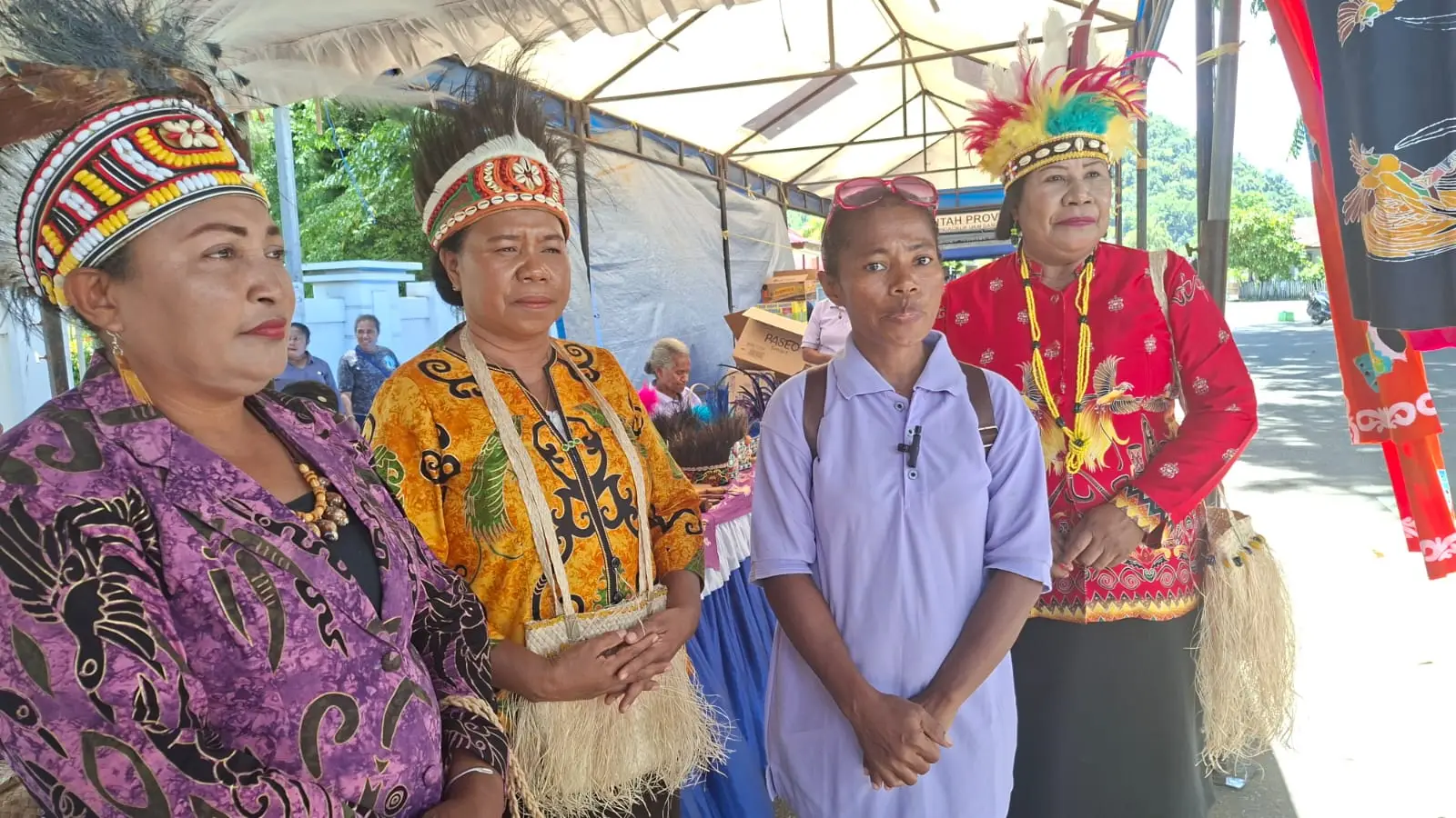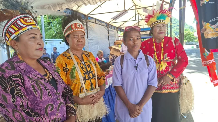 Ketua Dekranasda Yapen Dina L Rumbiak,Kadis Koperasi dan UMKM Yapen Imelda Welmina Sanadi pada pameran UMKM (Foto:RRI/Salo)