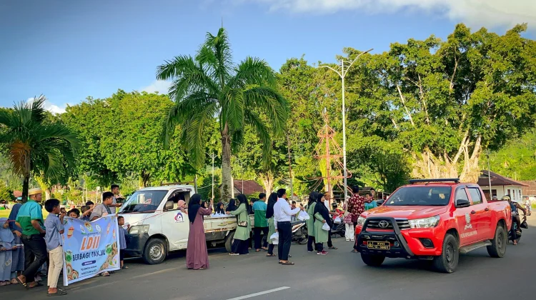 RRI CO.ID, Serui – TPQ Uswatun Hasanah bersama Majelis Taklim Al-Aziz berkolaborasi dengan DPD LDII Kabupaten Kepulauan Yapen melaksanakan kegiatan pembagian takjil di Alun-alun Kota Serui, Rabu 25 Februari 2026. Kegiatan sosial ini mendapat sambutan hangat dari masyarakat yang tengah menjalankan ibadah puasa.
