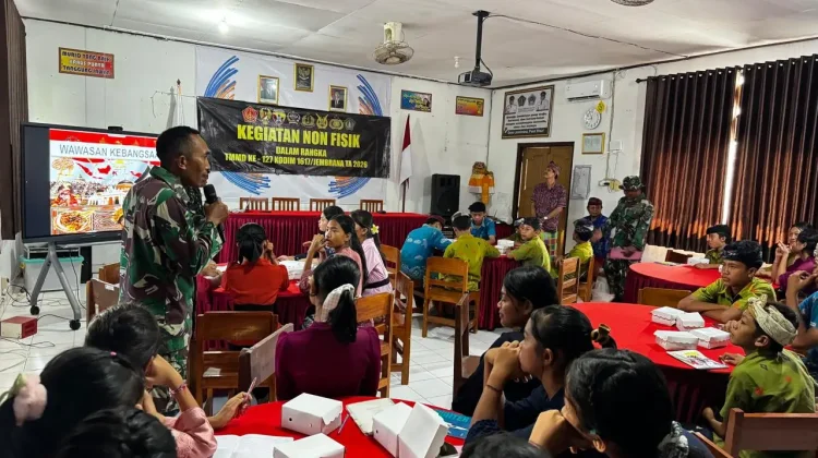 RRI.CO.ID, Negara - Satuan Tugas (Satgas) TNI Manunggal Membangun Desa (TMMD) ke-127 Kodim 1617/Jembrana terus menunjukkan komitmennya dalam mendukung pembangunan wilayah secara terpadu. Selain merealisasikan sasaran fisik, Satgas juga mengintensifkan program non fisik guna memperkuat kualitas sumber daya manusia. Kegiatan tersebut dilaksanakan di SMP Negeri 1 Mendoyo yang berlokasi di Desa Penyaringan, Kecamatan Mendoyo. Dalam kesempatan itu, para siswa menerima pembekalan materi Bela Negara dan Wawasan Kebangsaan (Wasbang). Materi disampaikan oleh Lettu CKM Komang Agus Ardiawan yang mengupas pentingnya menanamkan rasa cinta tanah air, kedisiplinan, serta peran generasi muda dalam menjaga keutuhan NKRI di tengah tantangan era digital. Penyampaian materi dikemas secara komunikatif dan interaktif sehingga siswa terlihat aktif mengikuti jalannya kegiatan.