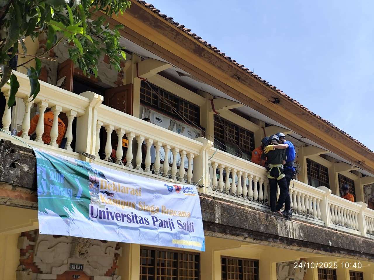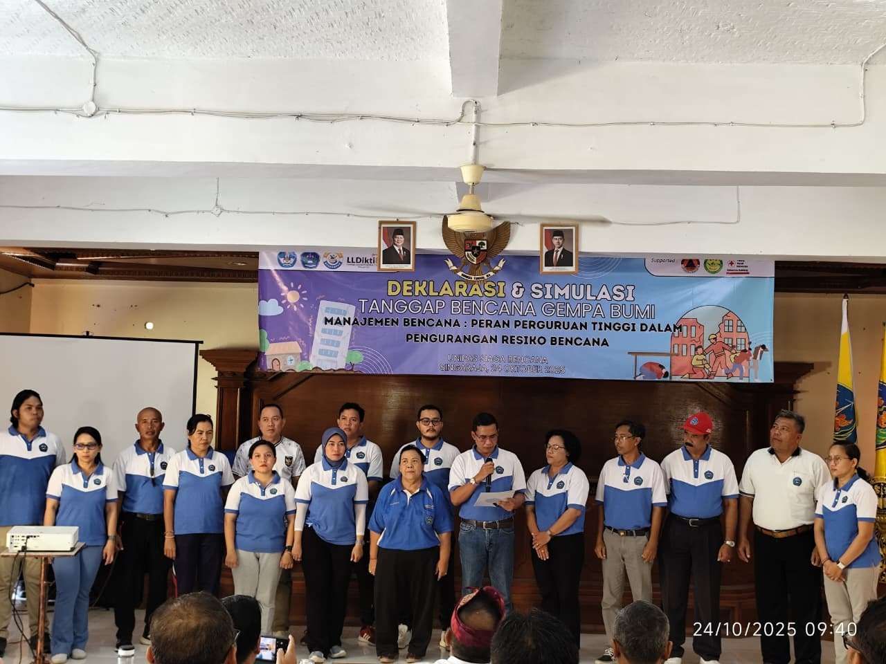 KBRN, Singaraja: Universitas Panji Sakti (Unipas) Singaraja melaksanakan Simulasi Bencana dan Deklarasi Kampus Siaga Bencana (KSB), Jumat (24/10/2025), di Aula Kampus Unipas. Tujuannya, menumbuhkan kesadaran dan kesiapan menghadapi potensi bencana di lingkungan kampus maupun masyarakat. Kegiatan yang dikoordinir oleh Pokja Unipas Siaga Bencana, dihadiri sejumlah pejabat serta lembaga terkait, termasuk BPBD Buleleng dan Lembaga Layanan Pendidikan Tinggi (LLDikti) Wilayah VIII.