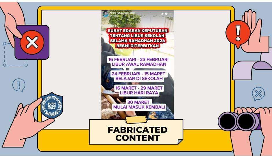 Faktanya, klaim tersebut adalah tidak benar. Dilansir dari turnbackhoax.id, setelah ditelusuri oleh Tim Pemeriksa Fakta Mafindo kata kunci “Surat edaran libur sekolah selama Ramadhan 2026” melalui mesin pencari Google, tidak ditemukan informasi yang membenarkan klaim tersebut.