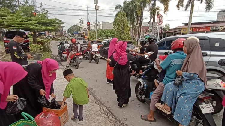 RRI.CO.ID, Sintang – Pengurus Daerah Aliansi Perempuan Peduli Indonesia (ALPPIN) kabupaten Sintang berbagi takjil kepada pelintas jalan area tugu Adipura pura simpang lima Sintang, Jum’at, 6 Maret 2026.