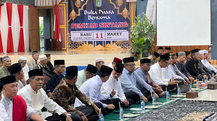 RRI.CO.ID, Sintang - Pemerintah Kabupaten Sintang menggelar acara buka puasa bersama jajaran Forkopimda, tokoh agama, dan tokoh masyarakat serta anak yatim piatu dari panti asuhan Mujahidin Sintang di Pendopo Rumah Jabatan Bupati Sintang pada Rabu 11 Maret 2026. Kegiatan ini merupaka agenda rutin tahunan yang dilaksanakan sebagai upaya memperkuat tali silaturahmi antara jajaran birokrasi dengan elemen masyarakat ditengah suasana khidmat bulan suci Ramadan 1447 Hijriah. (din)