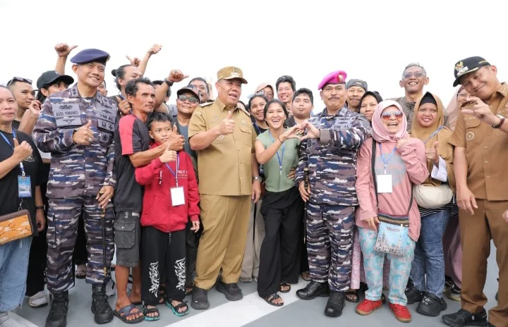 “Selamat datang sepradik-sepradik di kampung halaman. Kita sudah dibantu oleh TNI AL mulai dari keberangkatan hari Minggu kemarin hingga hari ini tiba di Babel," sambut Gubernur Babel.