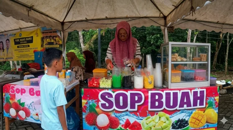 RRI.CO.ID, Sungailiat - Pedagang minuman segar sop buah menjadi salah satu pilihan untuk takjil puasa. Kesempatan itu terlihat dari stand UMKM di Ramadan Fair Sungailiat.